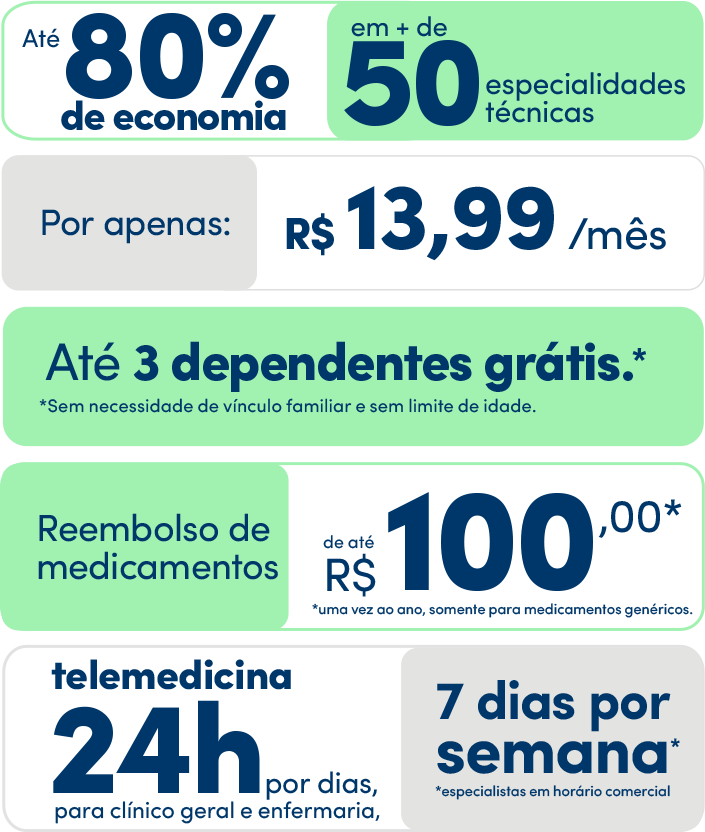 Tenha seu bem-estar garantido em consultas médicas e exames com preços acessíveis.